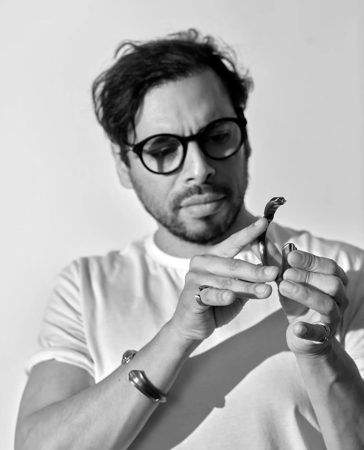 Over the years he has focused on crafting bespoke jewellery, working closely with clients to bring their concepts to life with a touch of his own artistic flair. The Kiss Collection represents a culmination of Alexander's journey, blending his father's artistic legacy with his own modern interpretation. Inspired by his father's 1970s bangle carving, Alexander infuses over twenty-five years of experience into each piece, marrying quality craftsmanship, attention to detail, and playful elegance for a contemporary audience.