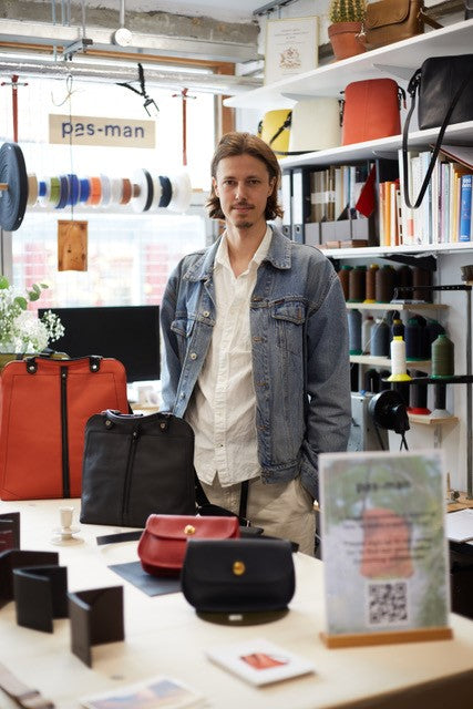 A sincere respect for leather reaches every aspect of his work, with the believe that authenticity to materials is integral to good design. Each PAS-MAN product is handcrafted in Joost's South East London studio with meticulous attention to detail while the use of carefully and ethically sourced materials is engrained into our process.
