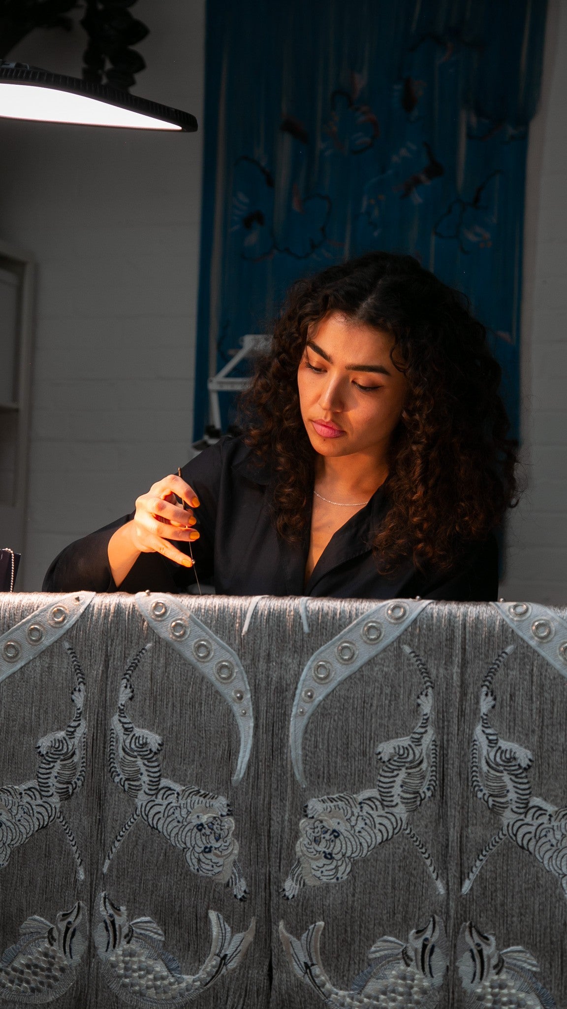 Most recently, she led new embroidery design development at de Gournay, translating her couture sensibility into bespoke wall coverings and spatial textiles. From her studio at Cockpit Bloomsbury, she now focuses on bespoke creations, collaborations, and commissions that place heritage crafts in contemporary interior contexts.