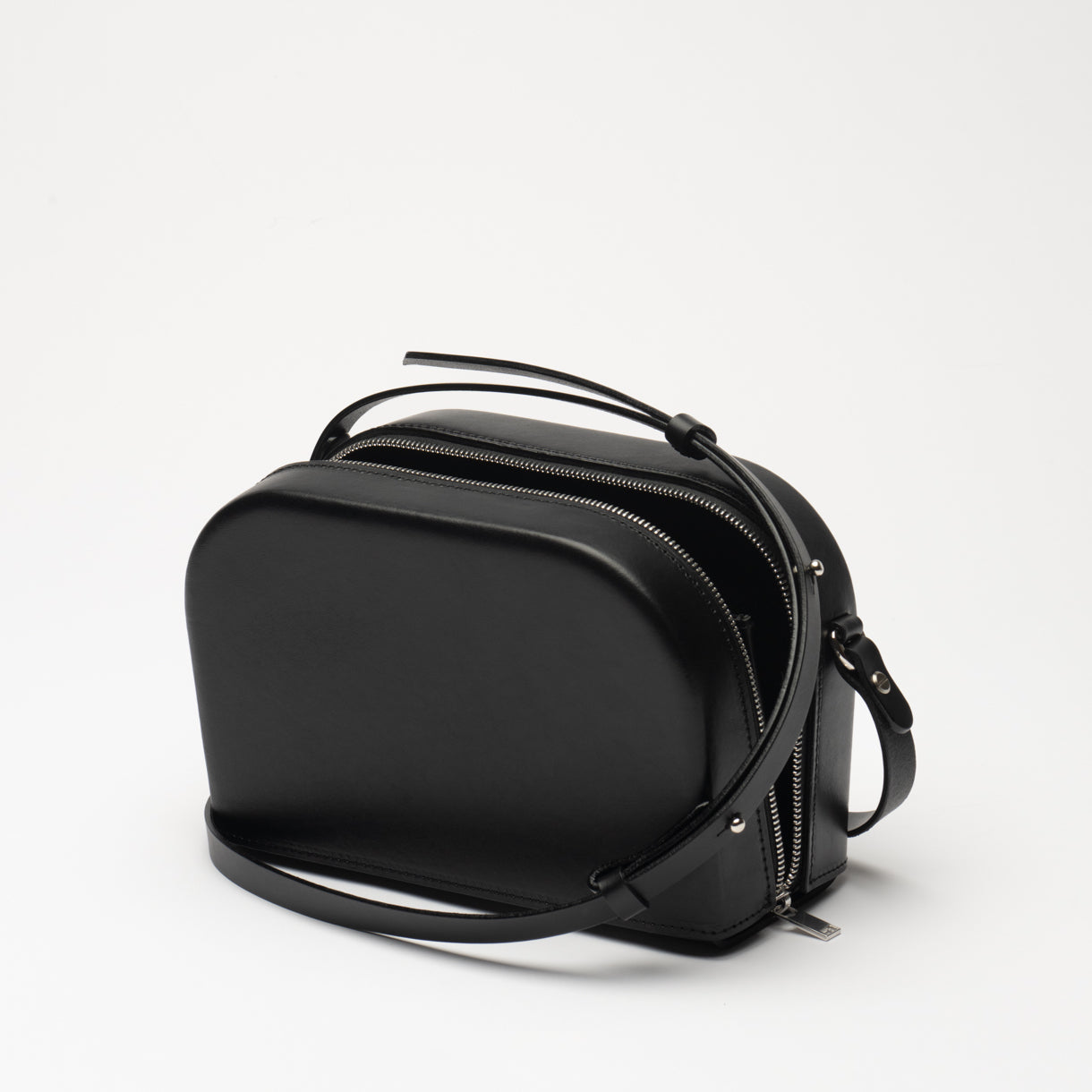 This rigid structure is made by wet forming leather – a traditional hands-on process of shaping and drying leather over wood blocks. Taking skill, patience and time, these engineered forms are well worth the wait.