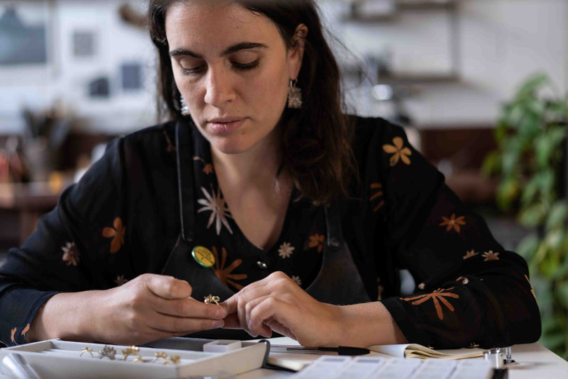 Originally from Norway, Alma Sophia has made a name for herself in the UK jewellery industry with her sculptural designs, minimalist aesthetic, and delicate craftsmanship. Alma Sophia experiments with shape and form to create three dimensional pieces, with repeated shapes being a key part of the design process.