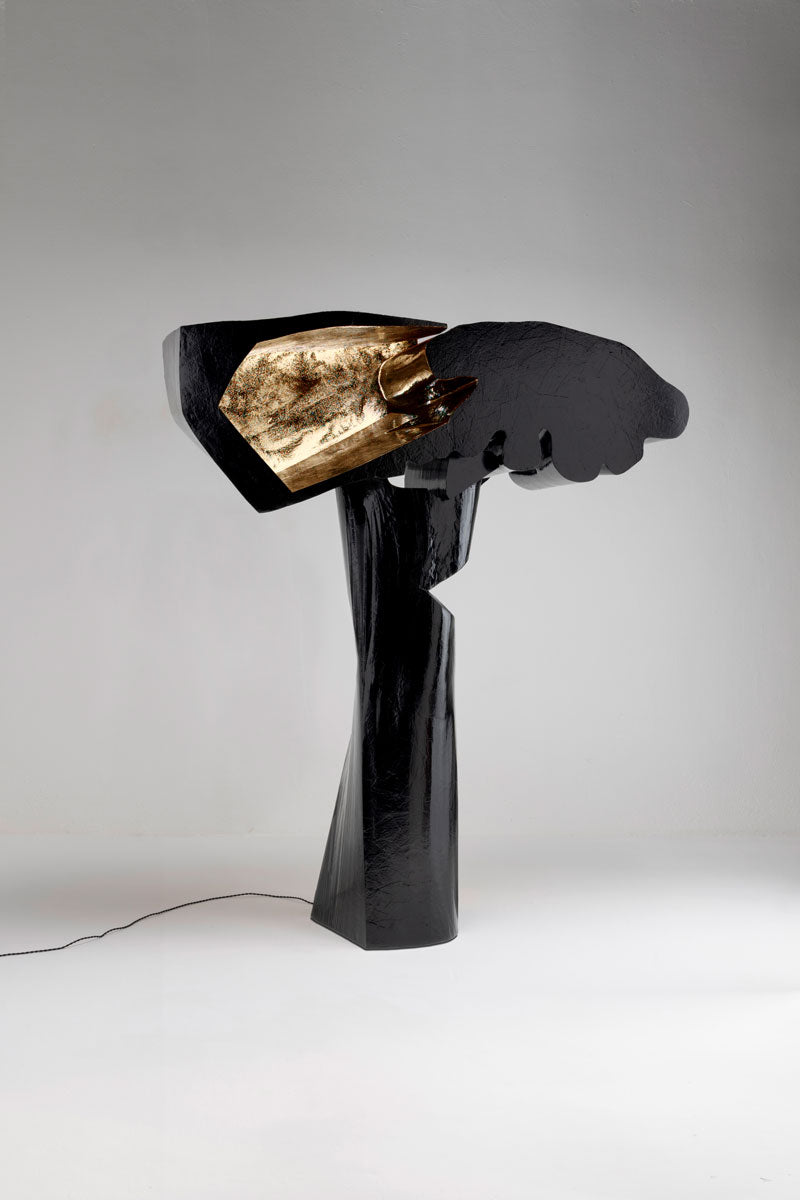'Dawn's Embrace' floor lamp captures the artist’s joyful memories of his childhood, a moment of time bathed in the golden hues of seaside sunrises.