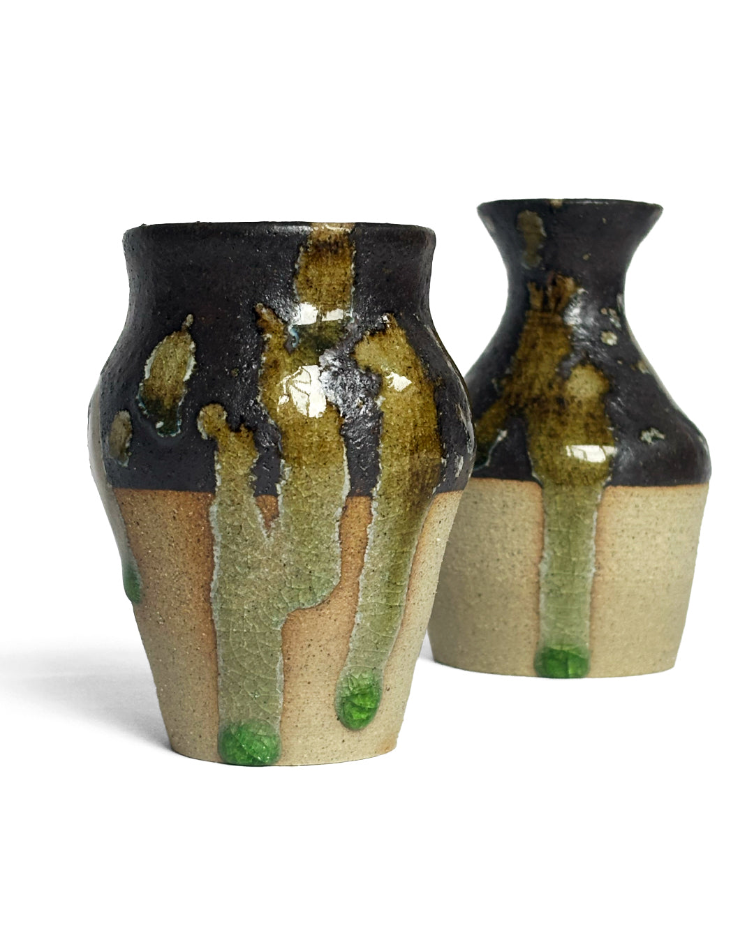 The set aims to show how waste can be reduced within a ceramics context. The forms have been influenced by traditional Roman Pottery, whilst the dark contrast of a matt finish with vibrant green drips was inspired by a walk through Box Hill, where dark wooded areas have been taken over by moss running up the trees.