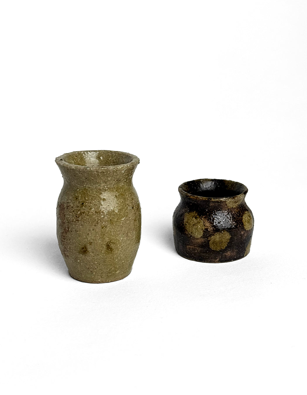 This miniature set of pots have been made using clay, seaweed, and a variation of stones and sands, all sourced along the coastline of the Isle of Wight. The forms have been influenced by Roman Pots which were excavated in the same area the clay for this collection was discovered.