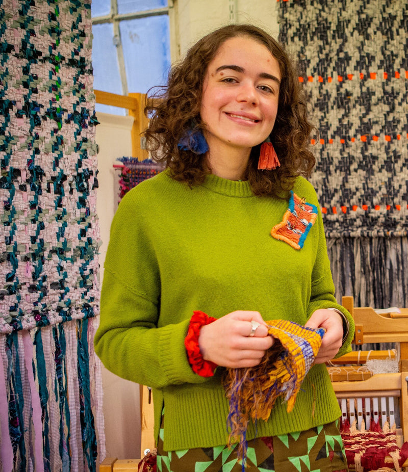 Eva Dennis is a textile weaver who joined Cockpit in 2020 after being awarded a place on the Make It! programme. She works on bespoke projects and commissions, transforming pre-loved sentimental materials into unique artworks. On the loom, she weaves fragments of these upcycled materials into abstract patterns and structures.