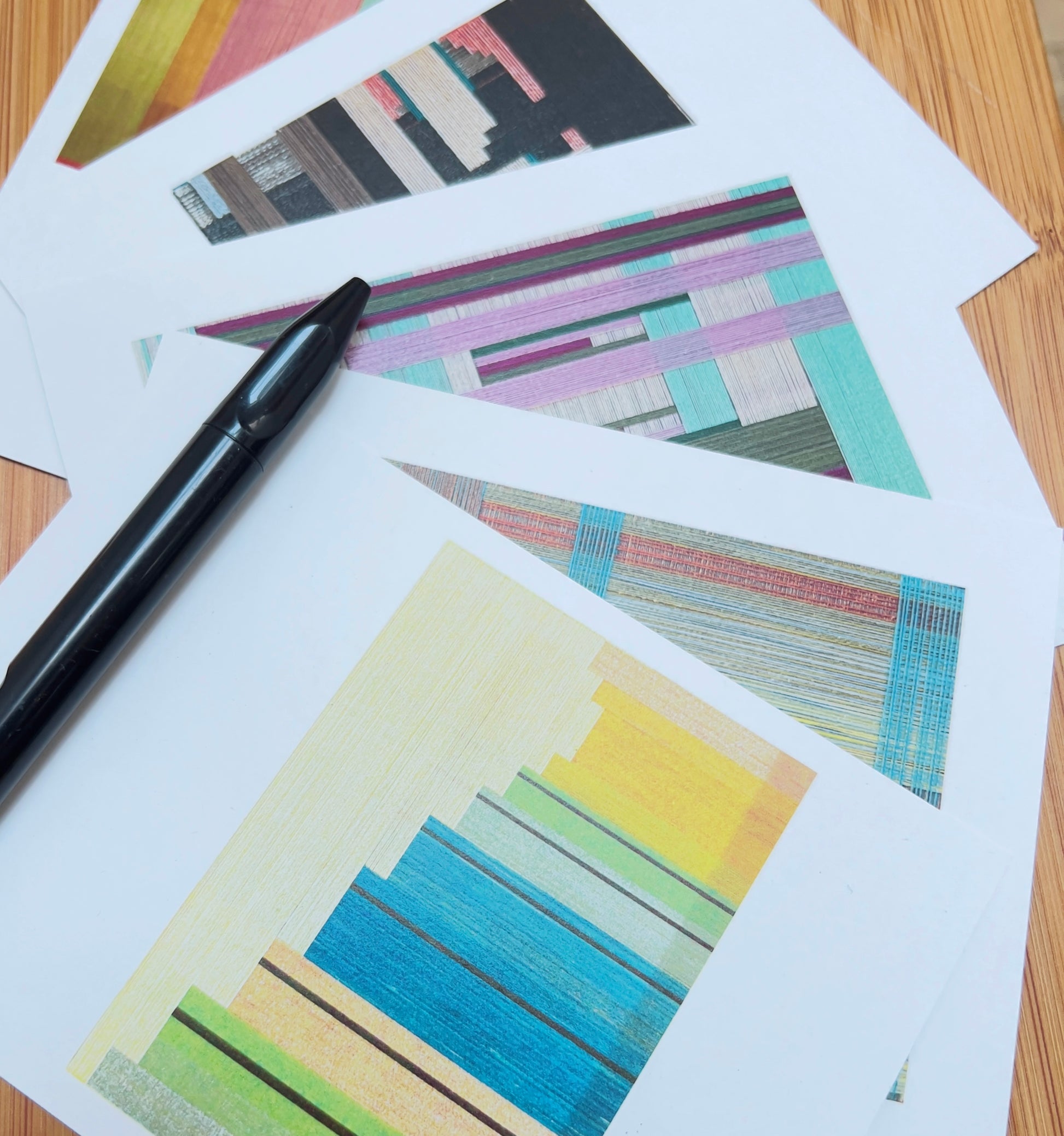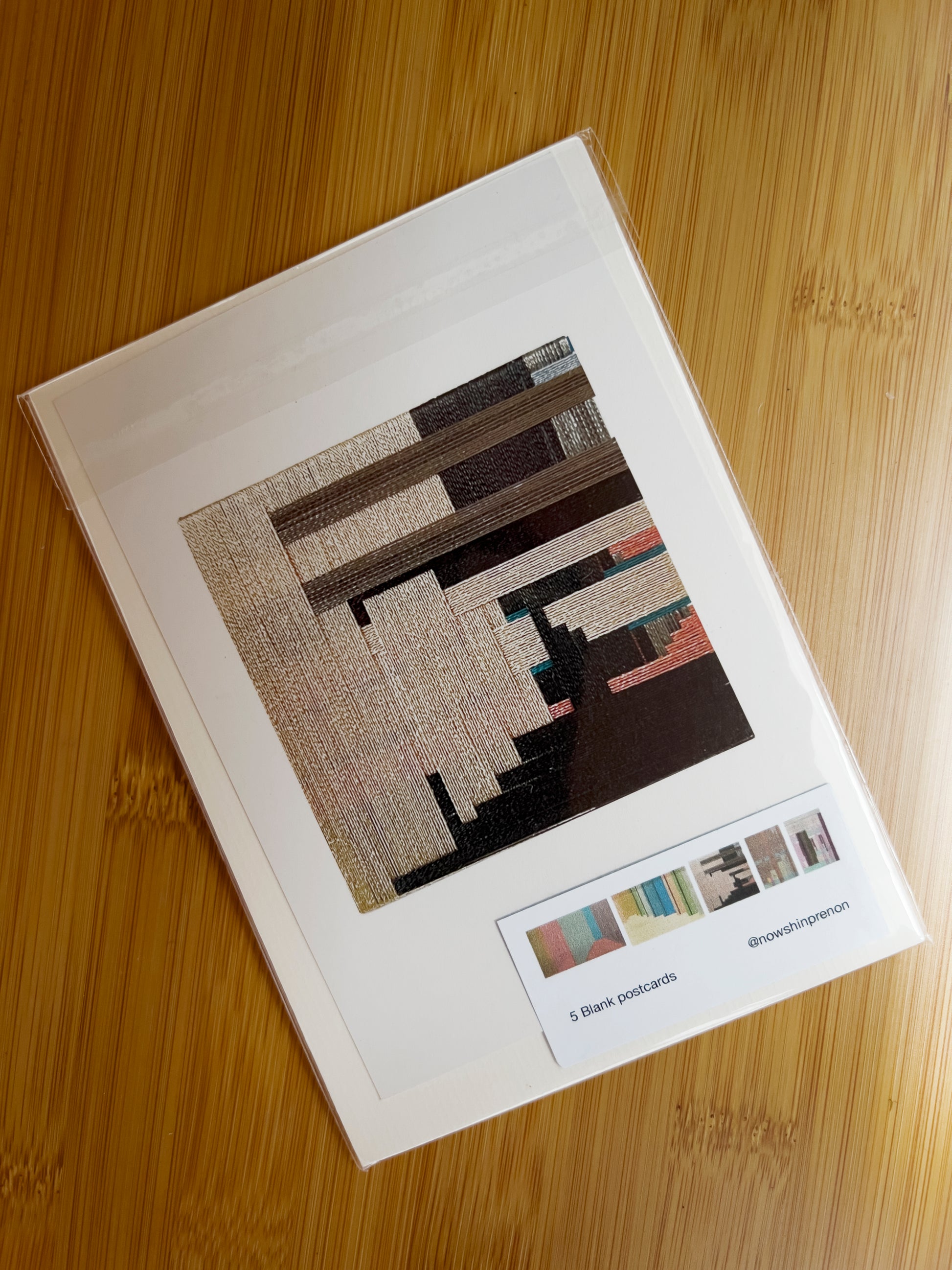 A6 prints of a selection of Nowshin’s original Winding artwork. Each pack contains 5 postcard designs and 5 envelopes.