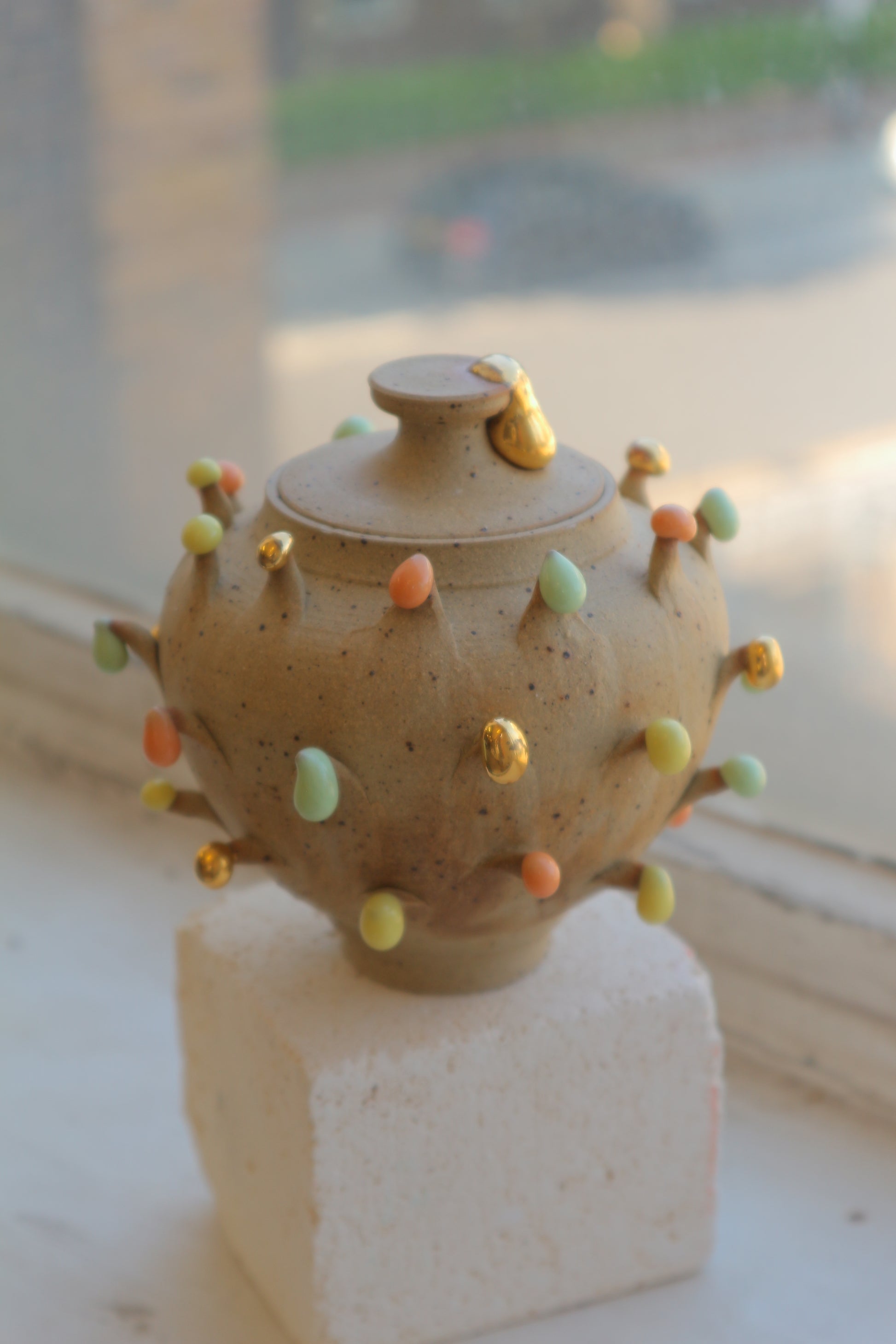 The Potsy Dotsy series is a playful exploration of gloop glaze, a medium with endless potential. Jihyun is constantly experimenting with its possibilities, pushing the boundaries of how it can be applied to functional pottery.