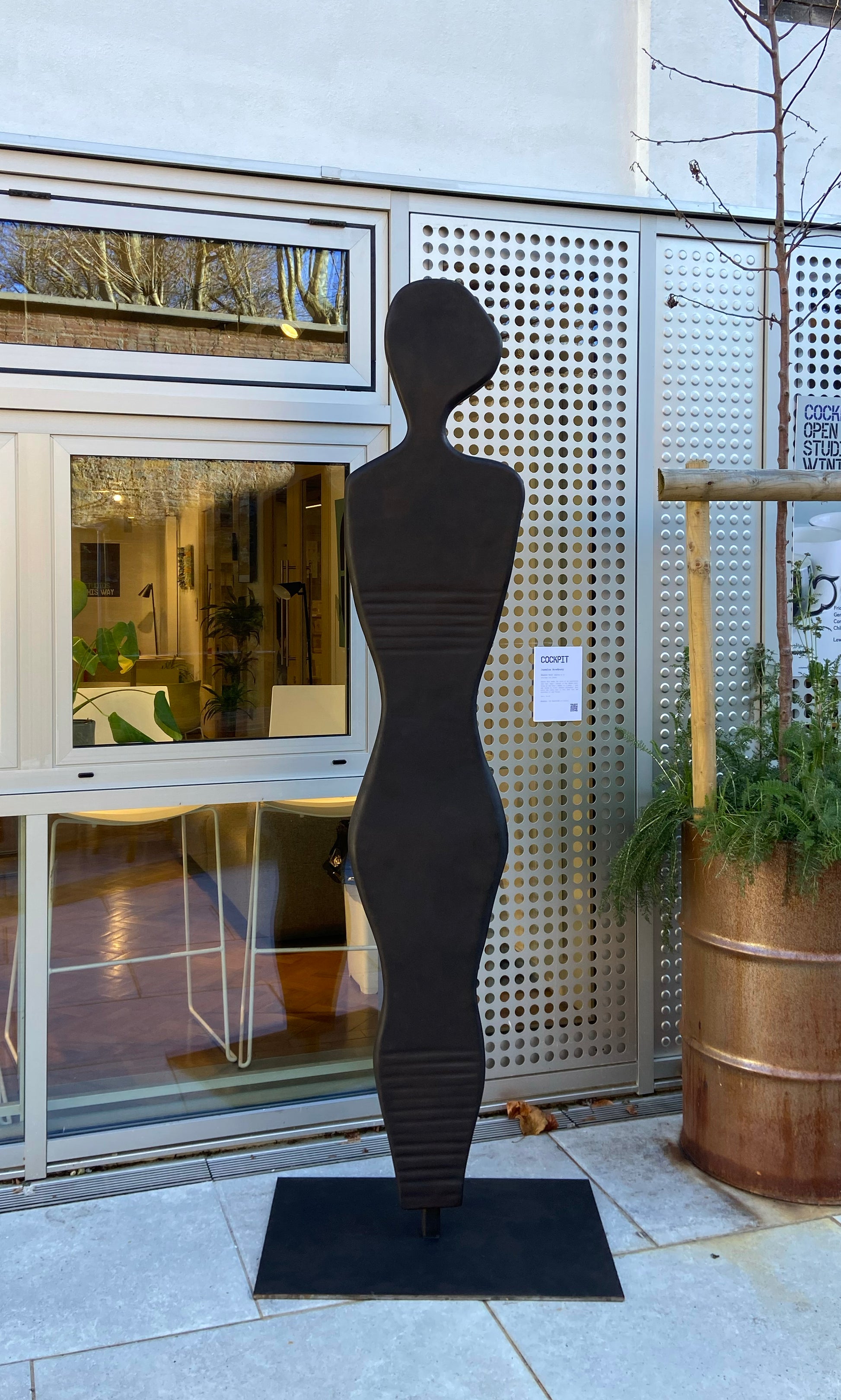 This piece is a literal shadow, permanently cast as a silhouette of the artist's own body. Originally sculpted in plaster, it was hand-carved, sanded and polished before being moulded and cast in cold cast Iron.