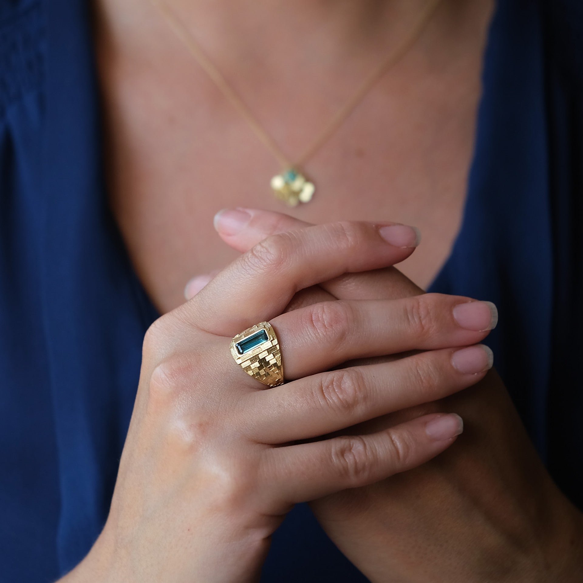 This elegant blue tourmaline ring will bring you joy each time you wear it. It’s a super easy-to-wear piece that will inject some serious ooomph into any outfit, whatever the occasion.
