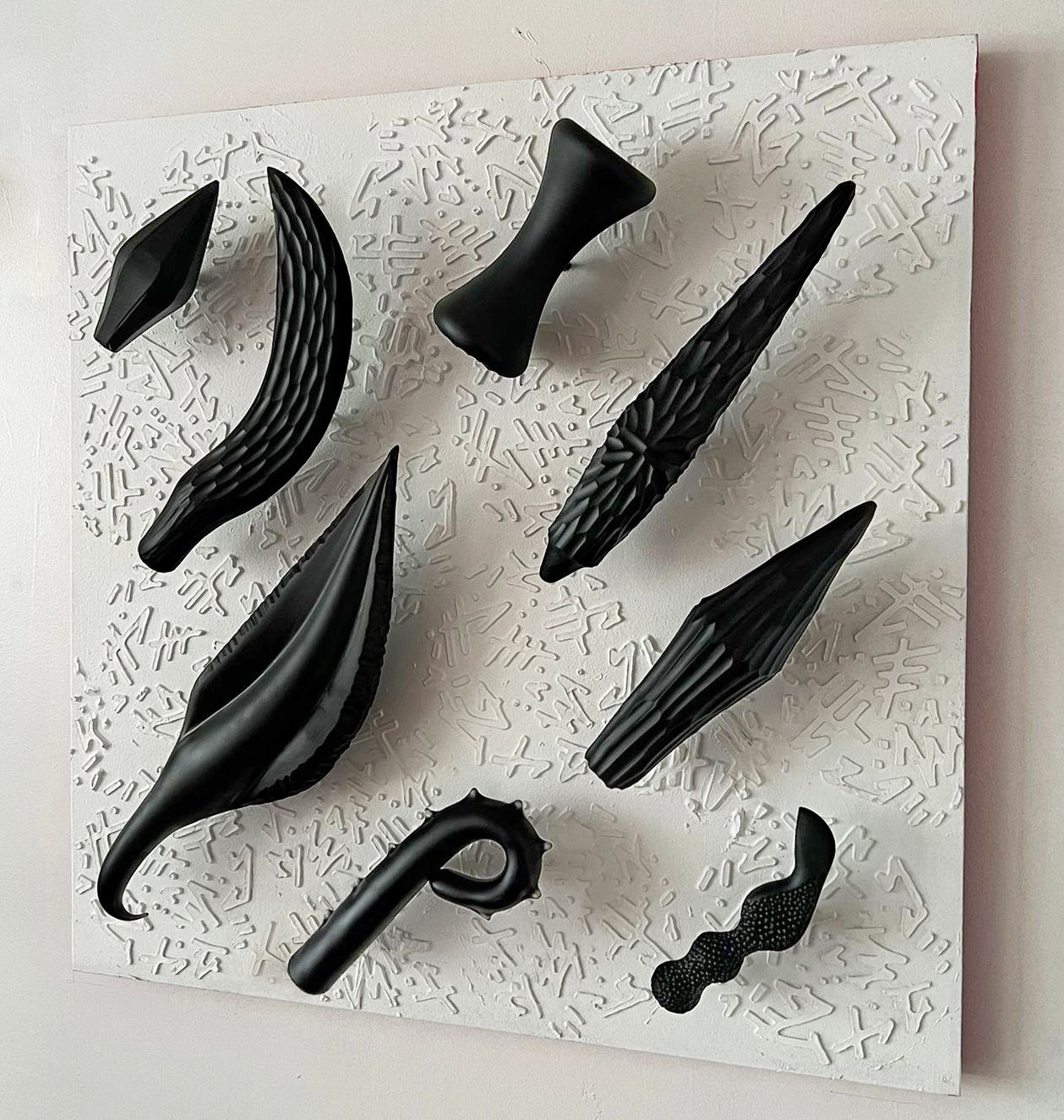 These Bronze Age inspired carved glass elements are influenced by the Cypriot trade routes of the ancient world, and the qualities of the Mediterranean Island that makes them unique. Exploring how insularity, as well as migration, affected and shaped art production and creativity along with economic, ritual, symbolic practices and ecological processes. Cyprus' large copper deposits enabled them to trade for tin to create Bronze objects, making stronger and more diverse workable materials.