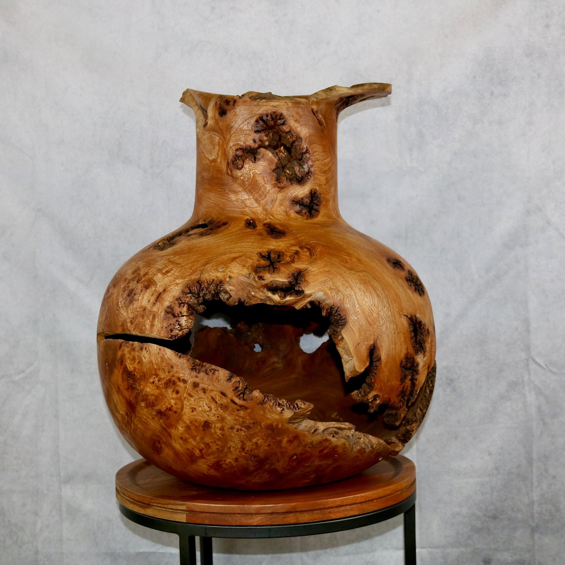 He was taught basic woodturning skills on a carpentry course and has since been working to develop his own woodturning business.