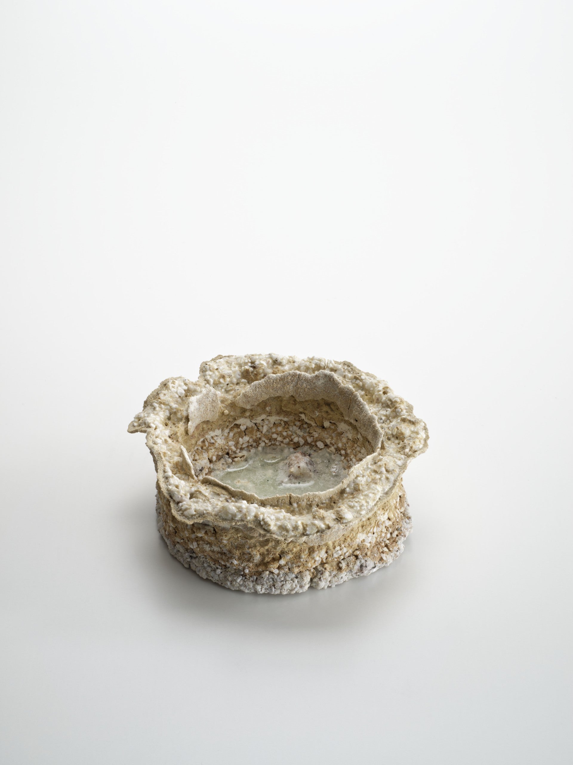 This piece was made out of wood ash, stones, and glass locally sourced in Shigaraki Japan. It aims to question the materiality of ceramics and blurring boundaries of glaze, clay, and glass.